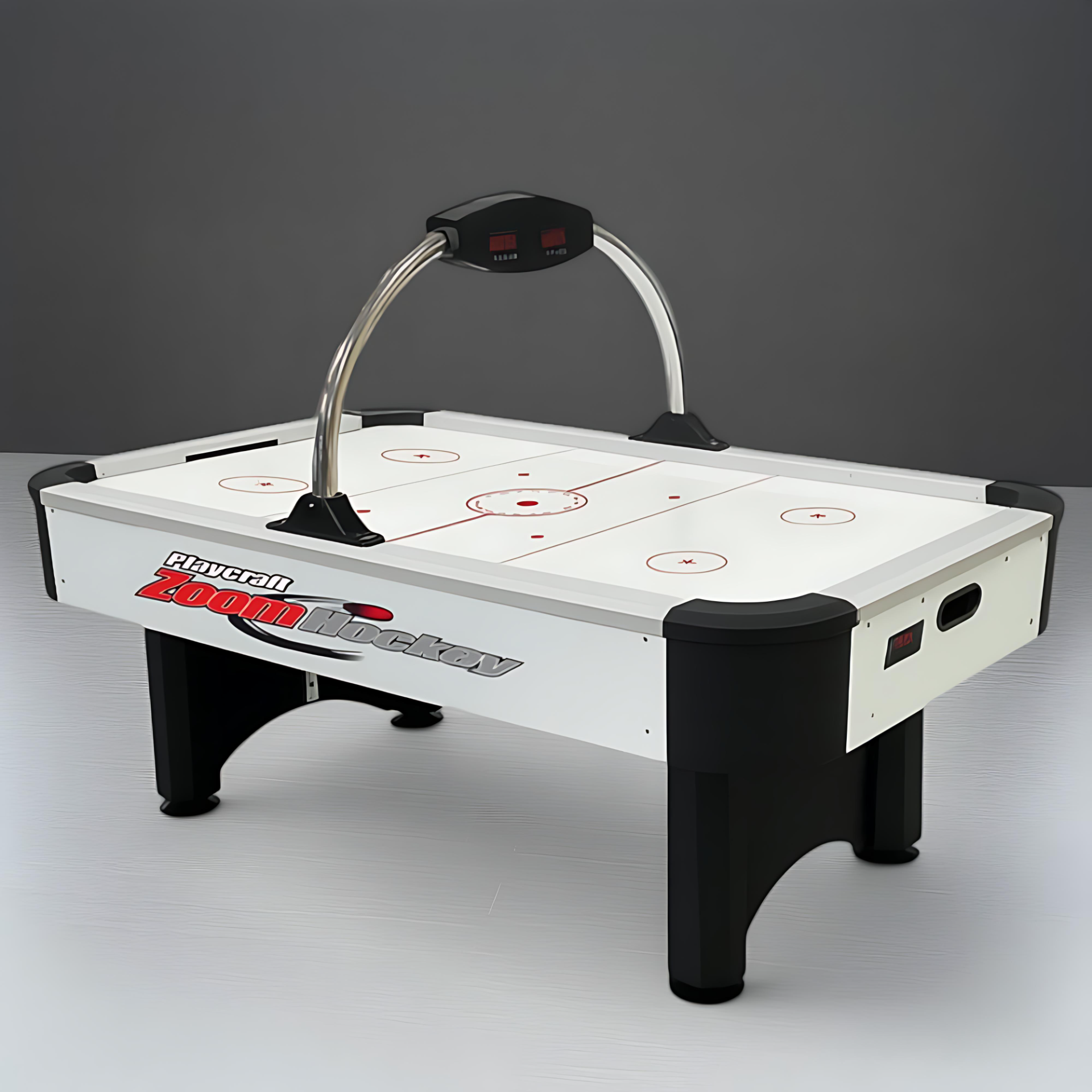 High-Speed Glide – Dual-Fan System + PVC Surface – Two airflow fans and a slick PVC-faced top ensure fast, friction-free puck movement across the entire surface.